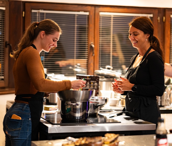 Događaj traje 3h – počinje pićem dobrodošlice, sledi kuvanje (1.5h), pa zajednička večera. Uključena su pića (vino, pivo, sokovi, voda) bez ograničenja.