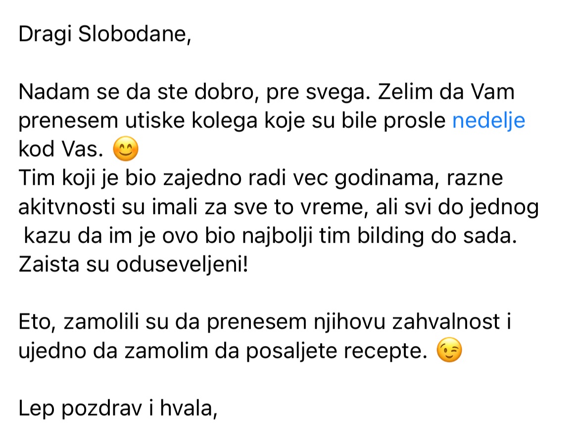 - Vaš tim i dalje priča o iskustvu sa teambuildinga – i deli slike po internom chatu